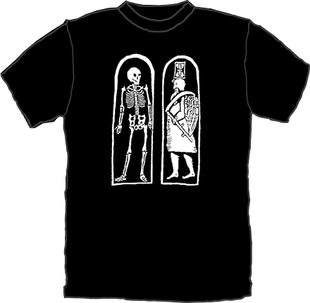 Timothy Lindall Salem, Massachusetts 1698-99 The Skeleton and Father Time are left and right panels facing each other on the Timothy Lindall Stone, The standing skeleton represents the Hope of ultimate resurrection from the grave, while father time is marching or floating towards the skeleton. Writings on the stone consist of: Sanctorum Memoria Sit Beata (Blessed be the Memory of the Saints)